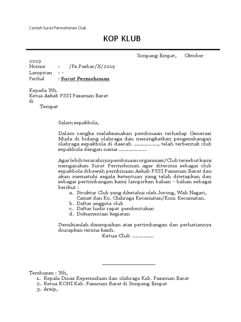 Contoh Surat Permohonan Club Lampiran Pdf