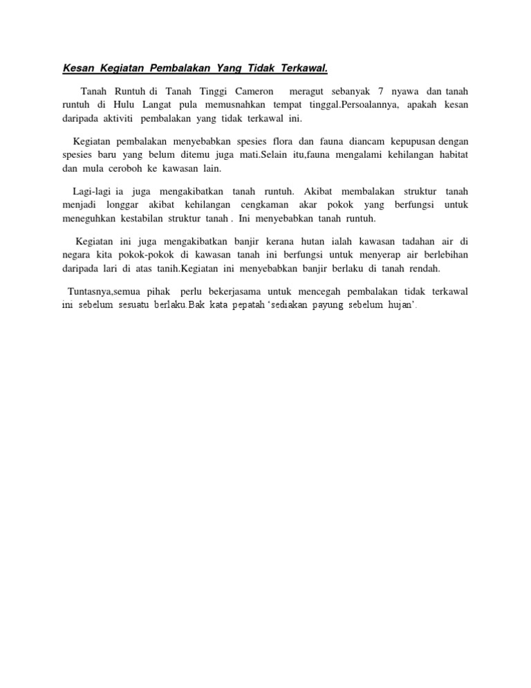 Kesan Kegiatan Pembalakan Yang Tidak Terkawal Pdf